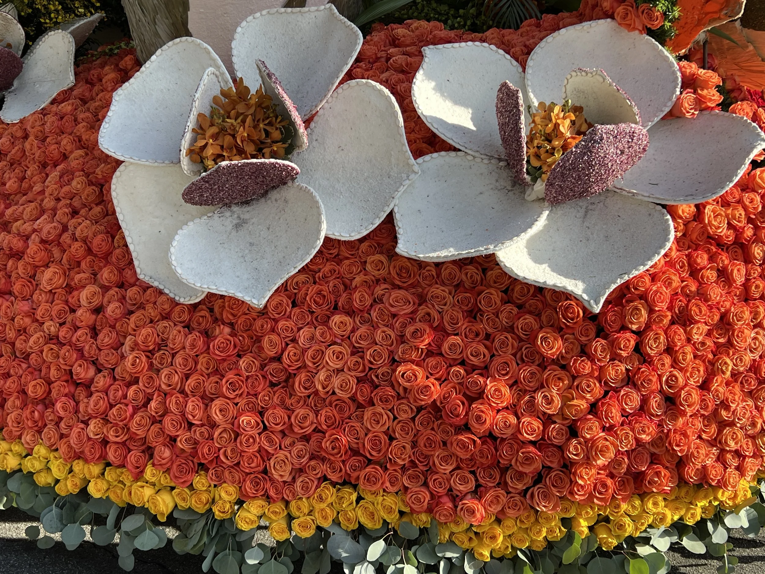 Monday ~ Tour a float barn and take part in decorating a float: Arrive at the Courtyard by Marriott Hotel in Monterey Park and board the CalFest van to head to one of the float barns to witness the final stages of float preparation. Get up close to the intricate floral work and participate by decorating a float.